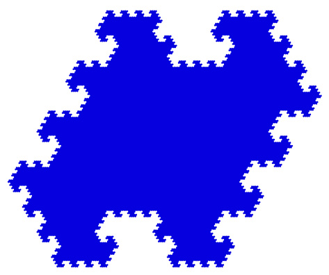 The scaling factor from one generation to the next is 1/2, and the rotation angle is 60 degrees.