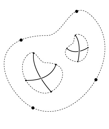 c) Within each smaller curve, draw a similar set of strands with one or more crossings, terminating on the boundary.