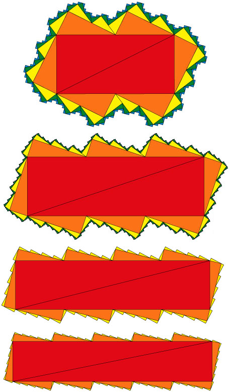 Scaling factors: These are easily obtained from the Pythagorean theorem. Each has the form 1/&radic(1 + n^2), where n is the number of squares making up the bar polyomino.