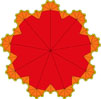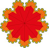 Thumbnails for some f-tilings with 9-fold rotational symmetry are below, linked to pages with larger images and descriptions. In addition, there are some examples with 10-fold and 12-fold rotational symmetry that can be accessed through "Tilings by Number of Prototile Edges".