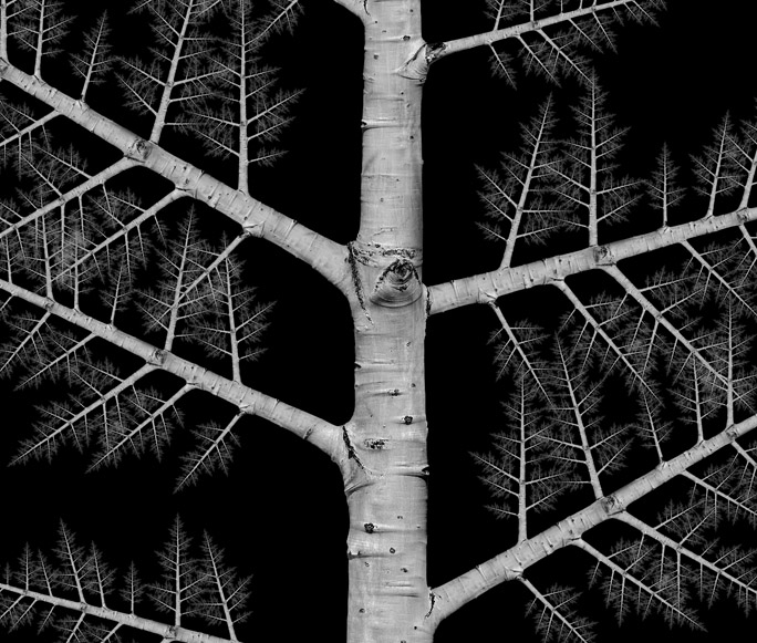 "Fractal Tree No. 12" is a digital artwork constructed by graphically iterating a photographic building block created from photographs of aspens. "Fractal Tree No. 12" is a limited edition of 50 prints, completed in 2010.